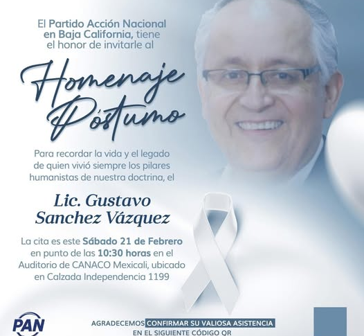 Mexicali Nacional HOMENAJE PÓSTUMO AL LIC. GUSTAVO SÁNCHEZ, ORGANIZA EL PARTIDO ACCIÓN NACIONAL EN MEXICALI. febrero 18, 2026