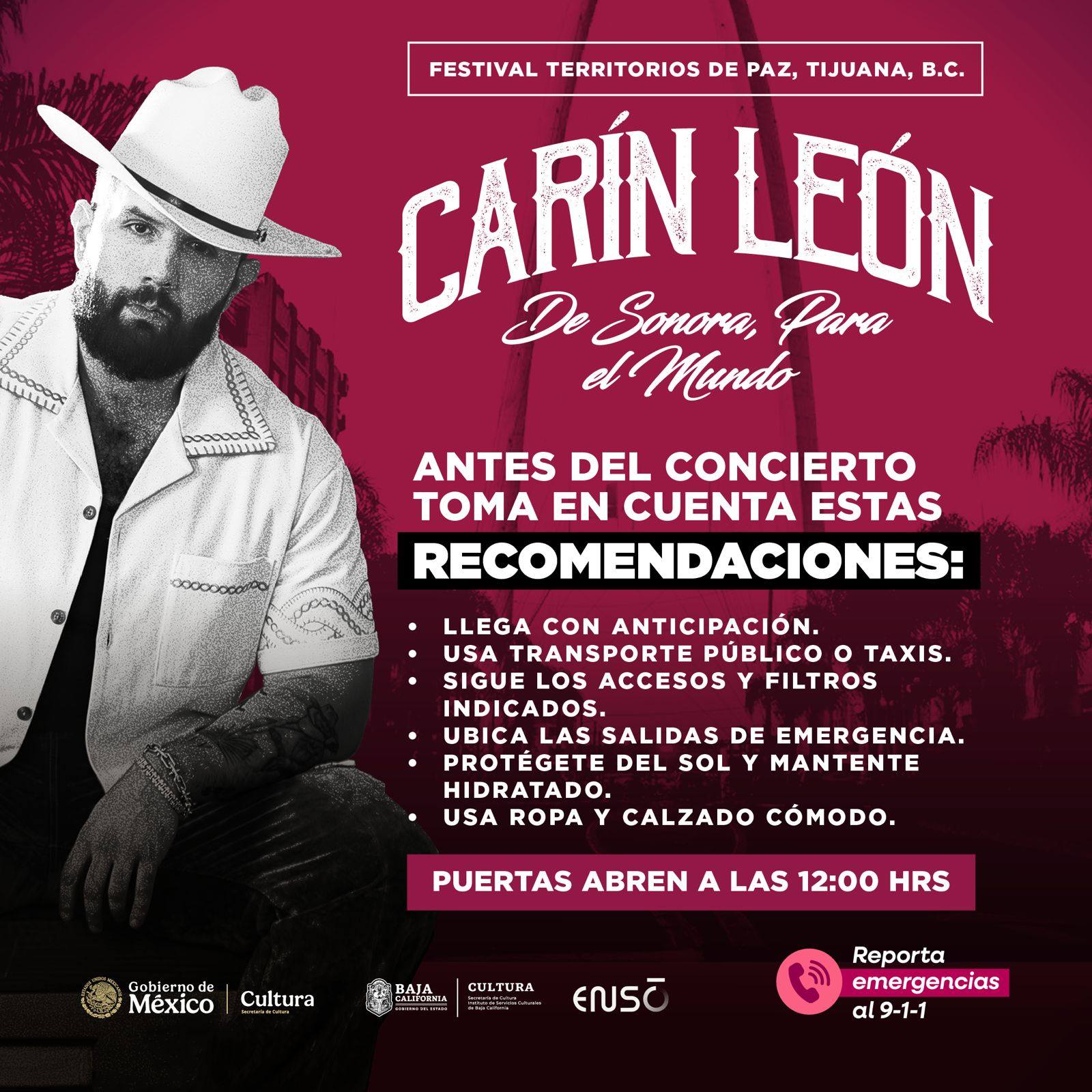 Baja California Tijuana Carín León llega a Tijuana para el inicio de los Festivales por la Paz. marzo 10, 2026