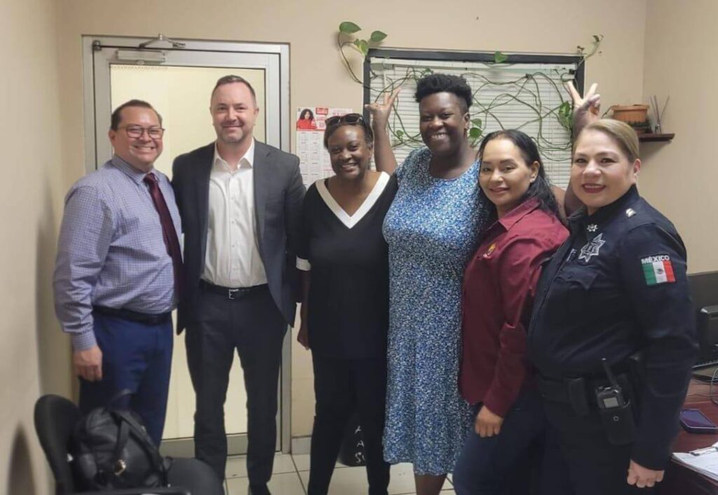Una mujer extranjera que contaba con reporte de búsqueda en Estados Unidos fue protegida, resguardada y reunida con sus familiares en la Garita Internacional de Mexicali-Calexico.
