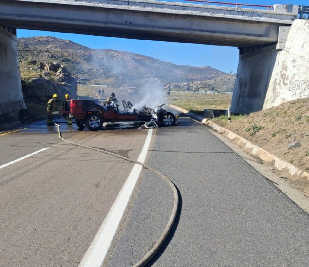 Vehículos quemados en la autopista Tecate-Tijuana y Tecate-Ensenada.
