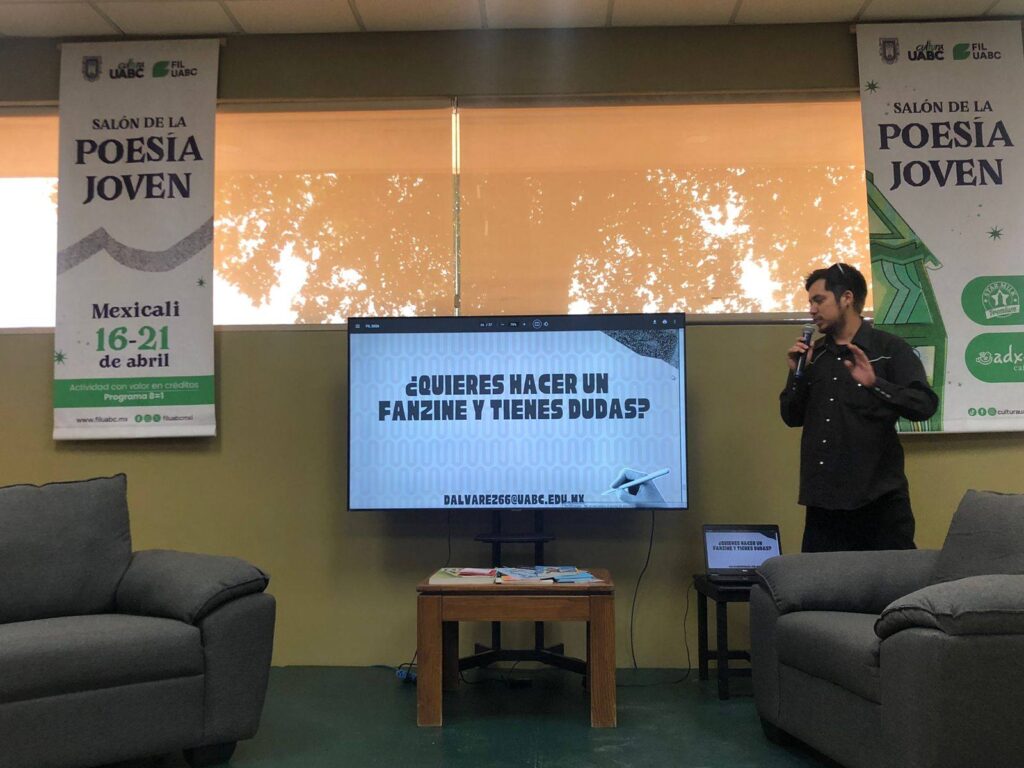 Mientras que, a través del programa Juventudes FIL, se llevó a cabo la charla “El regreso fanzinero”, impartida por el maestro Santiago Álvarez, quien abordó el fanzine como una forma de expresión libre surgida en las décadas de 1970 y 1980, caracterizada por su libertad creativa, ausencia de reglas formales y enfoque “hazlo tú mismo”, así como por su capacidad para comunicar inquietudes e intereses. Asimismo, subrayó su relevancia en el contexto local, al identificar publicaciones que reflejan la vida fronteriza y la cotidianidad en Mexicali.